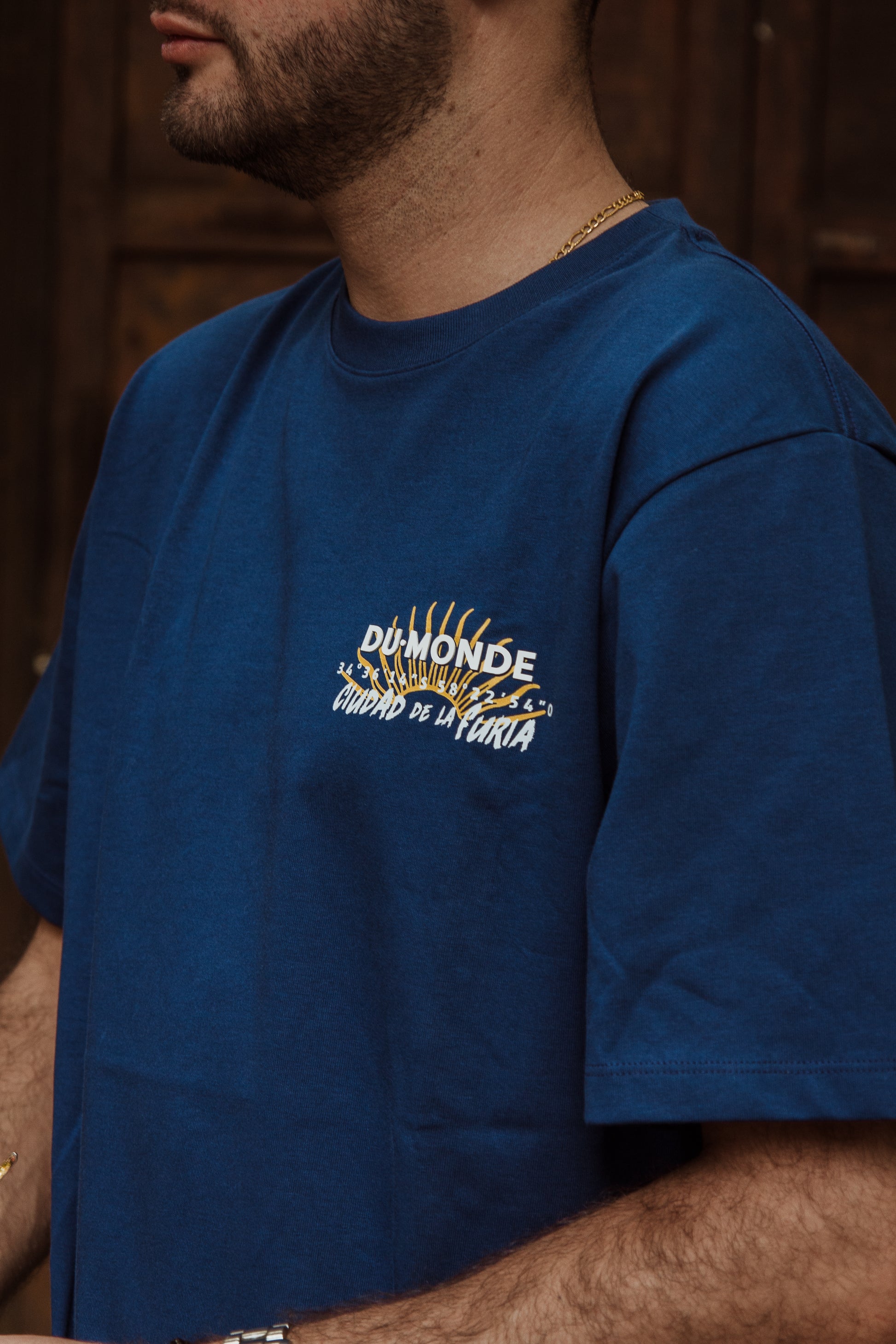 La Ciudad de la Furia T-Shirt es una prenda insignia de DU MONDE que rinde homenaje a la fuerza cultural y urbana de Buenos Aires. Confeccionada 100% en Colombia con algodón pima de 250 gramos, ofrece una textura suave, resistencia superior y una caída impecable gracias a su silueta oversize.